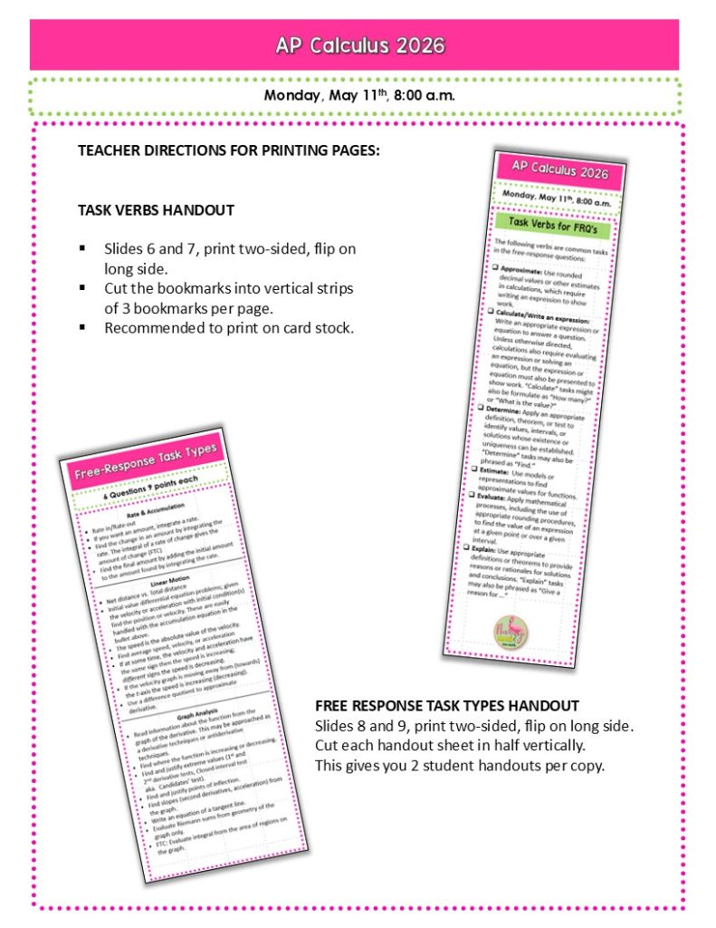 One of the biggest hurdles for Calculus students is not just doing the math, but communicating it. To help with this, we’ve included updated handouts on Task Verbs for FRQs and Free Response Task Model Types. These guides help students decode exactly what the College Board is looking for when they see words like “justify,” “explain,” or “verify.”