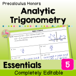 ⭐⭐ This Precalculus Unit 5 Essentials Bundle provides you with a customizable and fully-editable resource of Guided Notes, Warm-Ups, Video Lessons, Google Slides, practice/homework sets, end unit review and a daily content quiz that cover the topics for Analytic Trigonometry. ⭐⭐