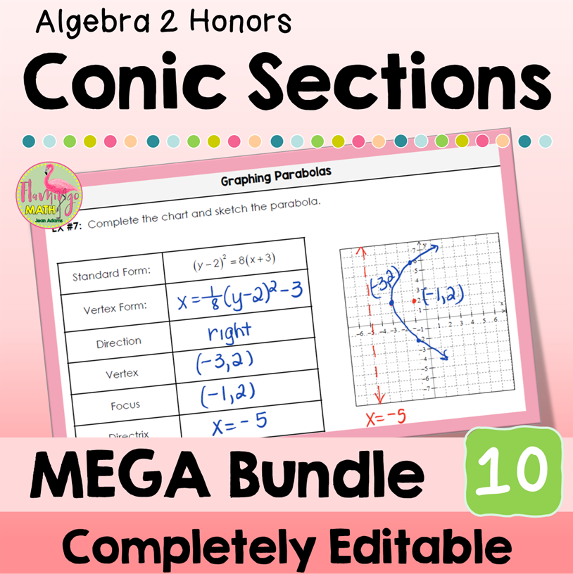 ⭐⭐ This Algebra 2 Honors Unit 10 MEGA Bundle provides you with customizable and fully-editable resources for the seven lessons in the unit, aligned to meet your teaching objectives and standards for Conic Sections. (Guided Notes, Video Lessons, Google Slides, SMART Board slides, practice and homework sets, daily content quizzes, warm up exercises, review assignments, assessments, and cooperative activities. ⭐⭐