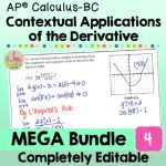 ⭐⭐ This AP Calculus Unit 4-BC MEGA Bundle provides you with a customizable and fully-editable resources (Guided Notes, Video Lessons, Google Slides, SMART Board slides, practice and homework sets, daily content quizzes, review assignments, AP-Style assessments, and cooperative activities) that align to the AP College Board CED topics for Contextual Applications of the Derivative. ⭐⭐