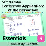 ⭐⭐ This AP Calculus Unit 4 Essentials Bundle provides you with a customizable and fully-editable resource of Guided Notes, Video Lessons, Google Slides, practice/homework sets, and a daily content quiz that cover the topics for Contextual Applications of the Derivative. ⭐⭐