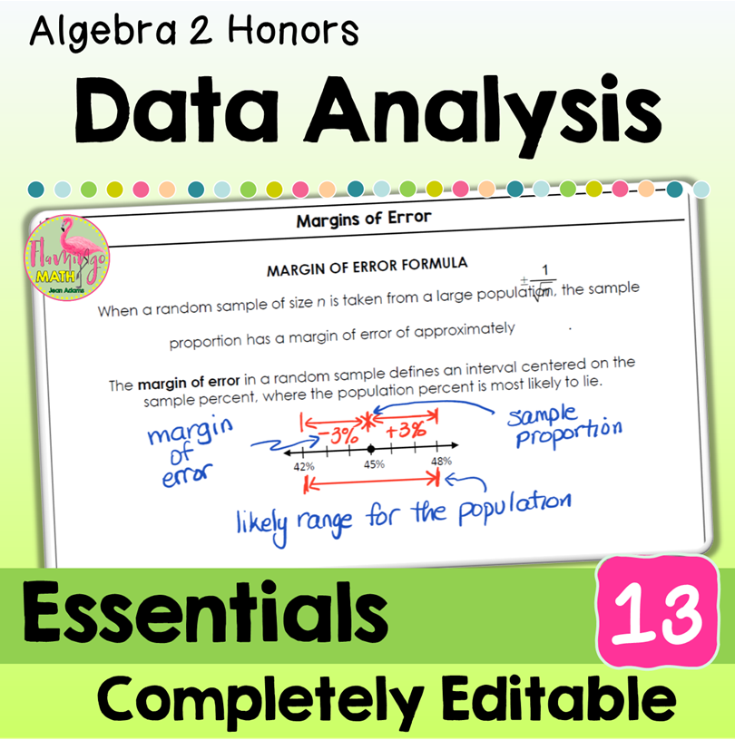 ⭐⭐ This Algebra 2 Unit 13 Essentials Bundle provides you with a customizable and fully-editable resource of Guided Notes, Warm-Ups, Video Lessons, Google Slides, practice/homework sets, end unit review and a daily content quiz that cover the topics for Data Analysis & Statistics. ⭐⭐