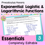 ⭐⭐ This Precalculus Unit 3 Essentials Bundle provides you with a customizable and fully-editable resource of Guided Notes, Warm-Ups, Video Lessons, Google Slides, practice/homework sets, end unit review and a daily content quiz that cover the topics for Exponential, Logistic & Logarithmic Functions. ⭐⭐