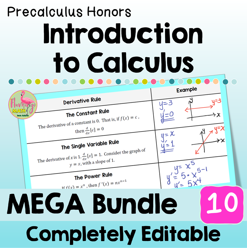 ⭐⭐ This Precalculus Unit 10 MEGA Bundle provides you with customizable and fully-editable resources for the five lessons in the unit, aligned to meet your teaching objectives and standards for Introduction to Calculus. Guided Notes, Video Lessons, Google Slides, SMART Board slides, practice and homework sets, daily content quizzes, warm up exercises, review assignments, assessments, and cooperative activities. ⭐⭐