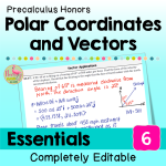 ⭐⭐ This Precalculus Unit 6 Essentials Bundle provides you with a customizable and fully-editable resource of Guided Notes, Warm-Ups, Video Lessons, Google Slides, practice/homework sets, end unit review and a daily content quiz that cover the topics for Polar Coordinates and Vectors. ⭐⭐